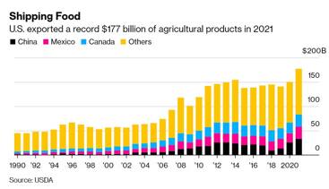 中國和墨西哥的需求飆升推動美國農產品出口去年增長18%,達到破紀錄的1770億美元。