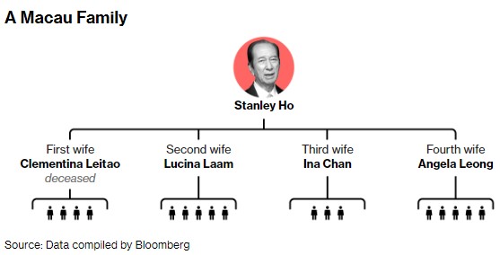已故家主何鴻燊(Stanley Ho)娶了四位妻子,共育有17名子女,形成了一個龐大而複雜的家譜,也帶來了不少糾紛。