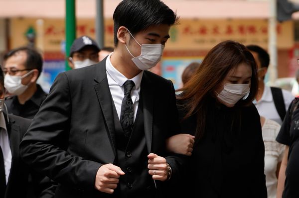 何超盈與丈夫出席何鴻燊的葬禮。