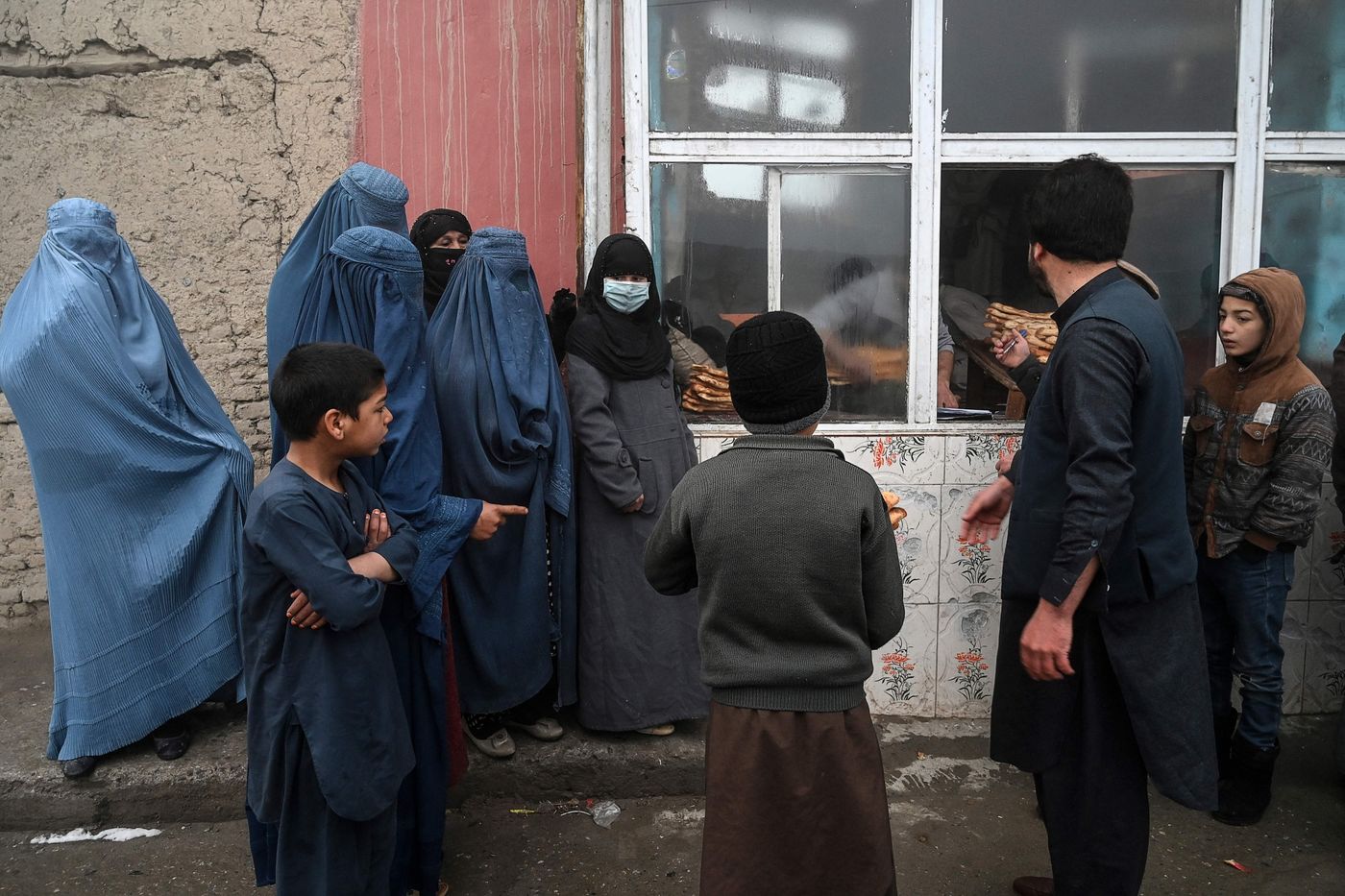 1月18日,在喀布爾,「解救阿富汗人免受飢餓」(Save Afghans From Hunger)運動在一間麵包店免費分發麵包。