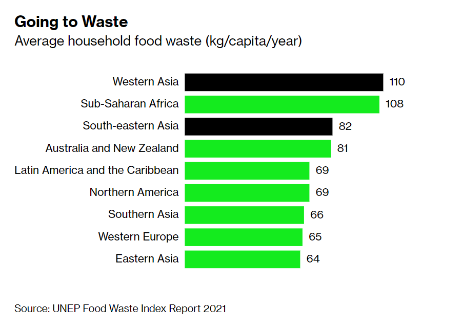 聯合國的數據顯示,全球每年損失或浪費約三分之一的食物,堆積如山的垃圾估計造成了8%-10%的甲烷等溫室氣體排放。亞太地區是世界上食物浪費最嚴重的地區之一,佔全球總浪費量的一半以上。