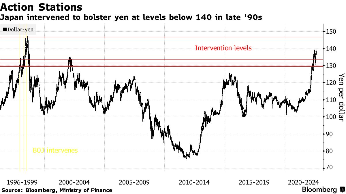 日本上一次出手支援日圓是在1998年亞洲金融危機期間,當時日圓觸及了1美元兌146日圓左右。當局之前曾在130附近水平進行干預。