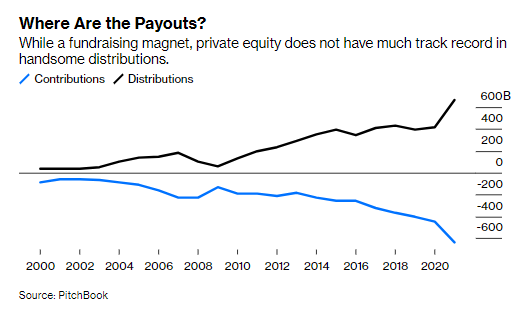 隨著借貸成本飆升──上周思傑系統40億美元的債券以10%的收益率發售──以及股市進入熊市,投資者開始將注意力轉向現金回報。按這個標準衡量,私募股權基金的表現遠談不上耀眼。金融數據公司PitchBook的數據顯示,2020年至2021年,私募股權基金從投資者籌集到4.9兆美元的認繳資本,但只分派了5.1兆美元利息。