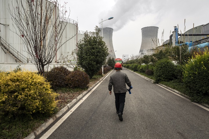 一名工人走過金尚成都工廠的工業級混合油儲罐。(攝影:Qilai Shen/Bloomberg)