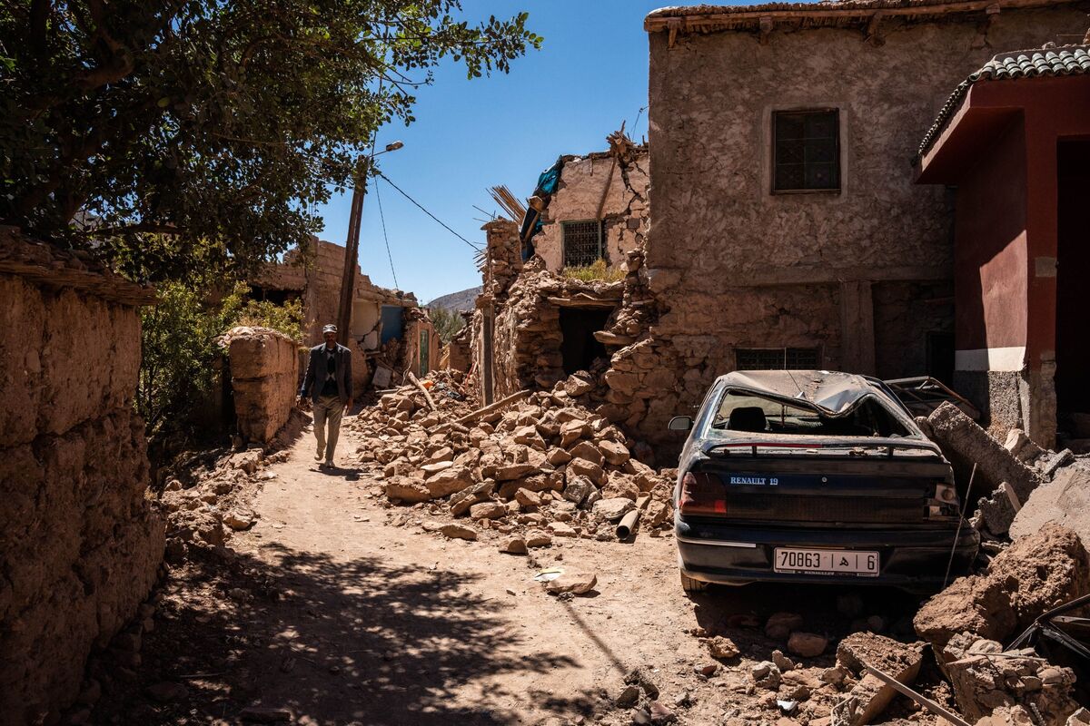 摩洛哥廷梅爾,道路兩側都是倒塌的建築。(攝影:Matias Chiofalo/Getty Images Europe)
