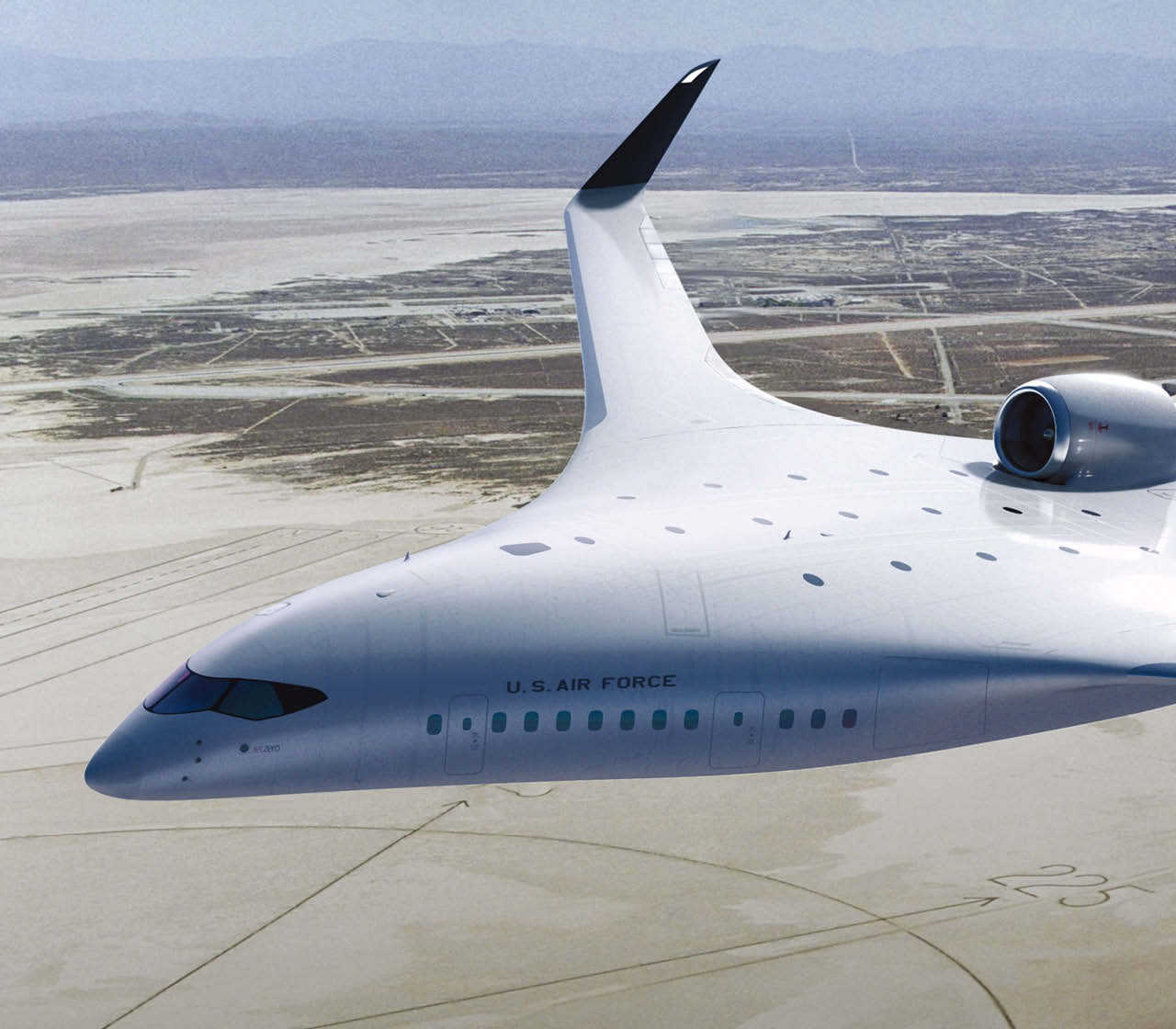 初創企業JetZero瞄准機身設計,提出了一個激進的構想:三角形的飛機,就好像一隻在空中飛行的巨大魔鬼魚,機身較短且寬,足以提供讓飛機飛行所需的升力。設計取消掉尾翼,取而代之的是兩個安裝在機尾的引擎,既提供動力,又確保飛行的穩定性。