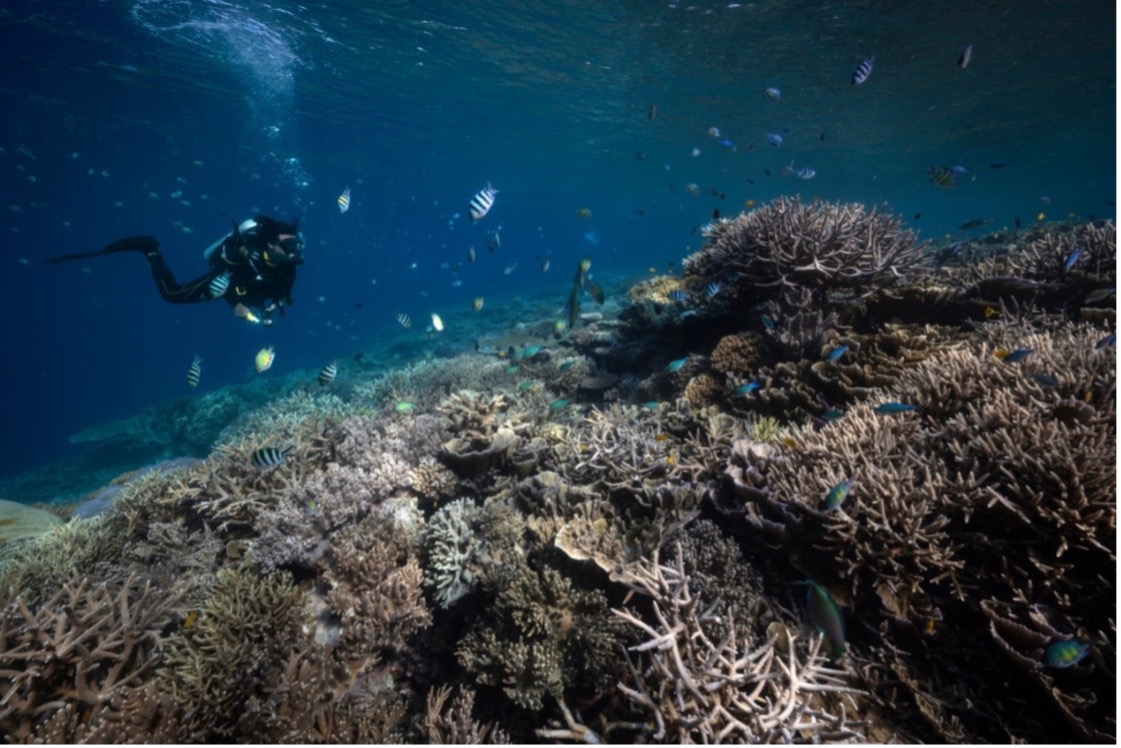 印度尼西亞西巴布亞地區拉賈安帕特群島海域的白化珊瑚。