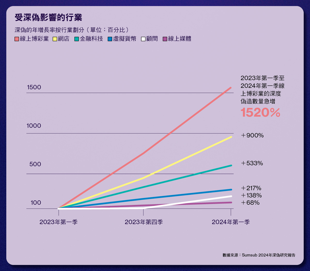 「一年前,深偽技術是非常罕見的,」 Sumsub AI及機械學習部門主管Pavel GoldmanKalaydin表示,由於深偽的技術門檻高,詐騙者過去多以購買證件模板作為身分詐騙和洗錢手段,「但我們看到它(深偽)越來越受歡迎,而且深偽技術每個月都變得更流行。」