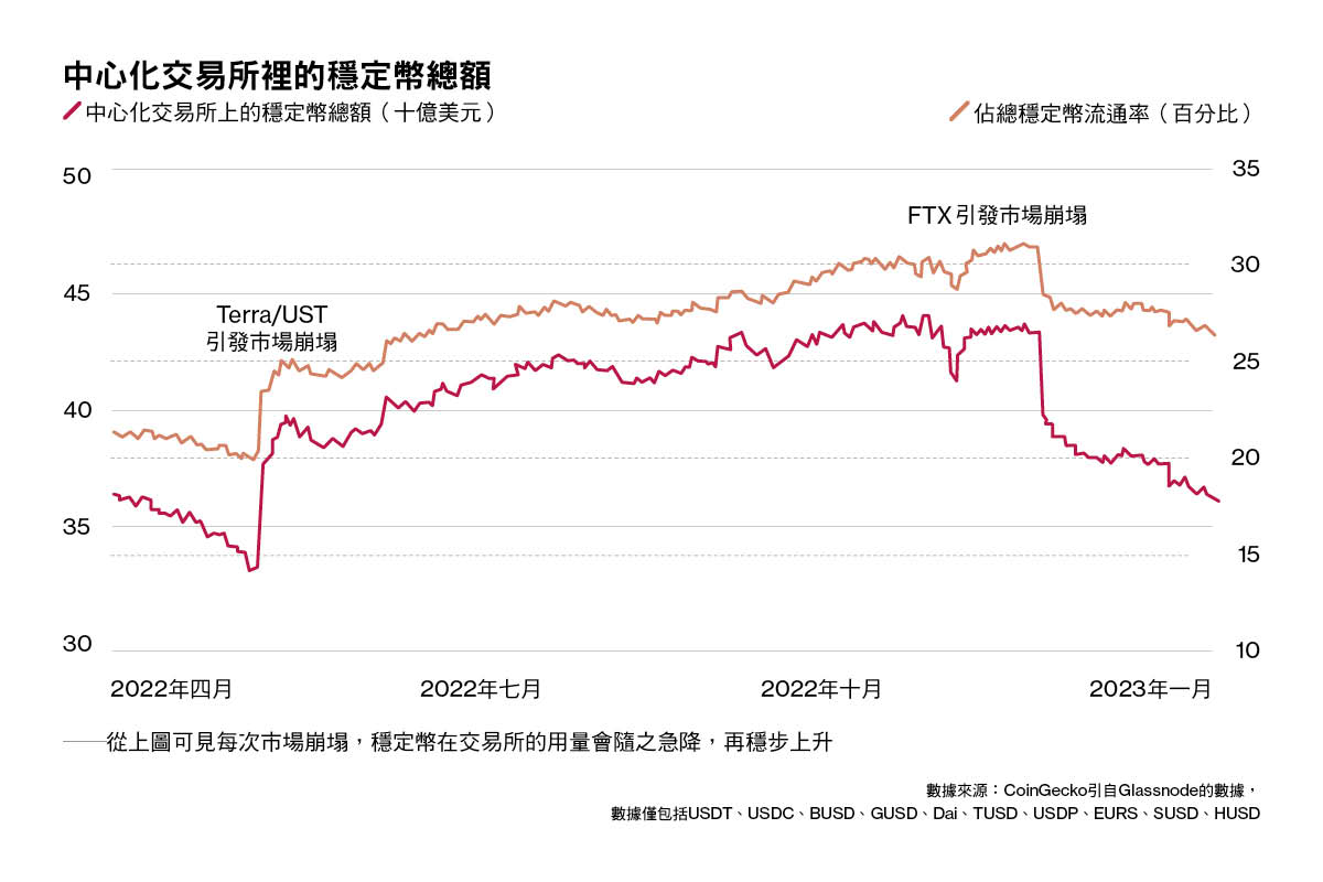 穩定幣的誕生離不開交易所。第一批比特幣交易所在2010年湧現於網絡上,允許投資者直接以美元買賣虛幣。自此以來,虛擬貨幣投資者和交易所便渴求一種既方便傳輸又能儲存與資產同等價值的「交易工具」,待市場波動時,投資者能夠將虛幣兌換為該交易工具,站在交易所的「場邊」避險,免去後續的出入金時間;對交易所而言,這種做法能夠把錢留在平台,減少因市場波動而形成資金擠兌。