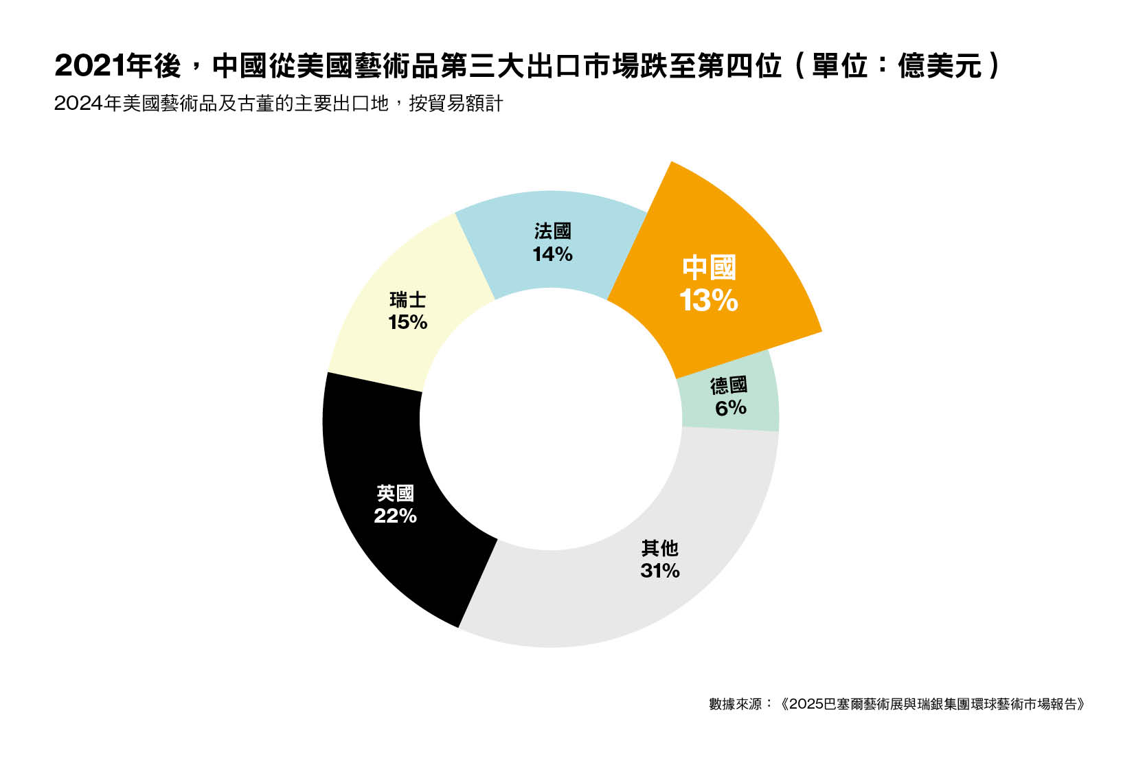 「中美之間的緊張局勢仍然是風險之一,持續的不確定性可能會抑制美國寄售商品流向香港拍賣會,並導致中國收藏家更加謹慎地進行境外購買。」瑞銀財富管理投資總監辦公室全球資產配置聯席主管蘇安純(Adrian Zuercher)又指,雖然香港作為免稅和戰略性定位的藝術中心繼續展現韌性,但全球貿易政策的摩擦將無可避免地打擊信心。